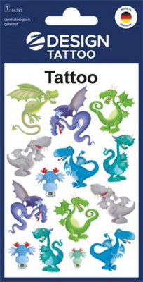 Matrica, tetoválás, 1 ív, 76x120 mm, AVERY ZWECKFORM, "Z-Design No.56751", sárkányok