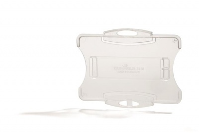 Praktikus azonosítókártya-tartó, többféle rögzítési lehetőséggel.