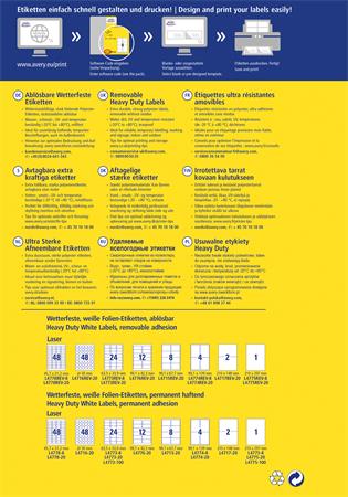 Etikett, 210x297 mm, poliészter, időjárásálló, etávolítható, AVERY ZWECKFORM, fehér, 20 etikett/csomag